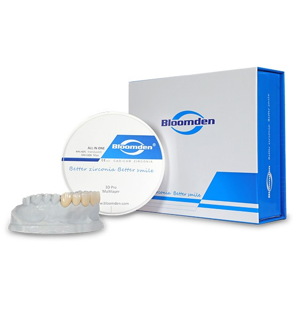 Bloomden La circona multicapa 3D Pro no se parece a ninguna otra circona puede exhibir un rango de resistencia de 800 MPa 1200 MPa que puede cubrir partes anteriores y posteriores tanto para coronas como para puentes incluidas las restauraciones con implantes