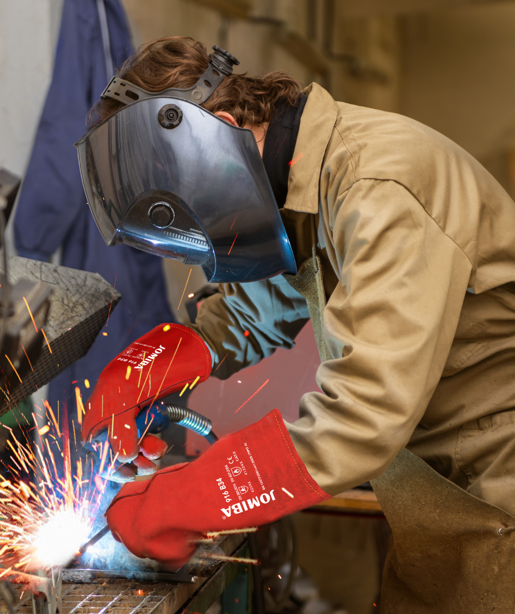 Guante de soldadura tipo A de piel serraje crupón vacuno, forrado totalmente y cosido con hilo de Kevlar, de la talla 10. Esta especialmente diseñado para trabajos de soldadura en general, trabajos de mantenimiento, mecánicos, ferrallas y calderería. Además, tiene una excelente resistencia a la abrasión y punzonado (Nivel 4) y es resistente al calor por contacto nivel 1.